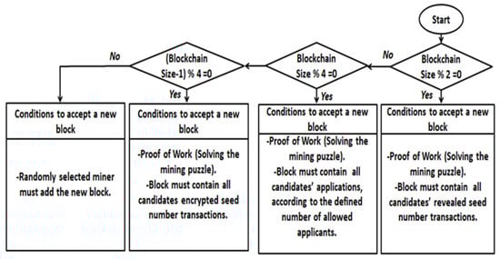 There are many variants of the PoS algorithm [50]. In general, there is a certain threshold of coins that each user must stake in the network in order to become a candidate validator. Staking one’s coins in the network is undertaken by a defined type of transaction that transfers the coins to a defined account wherein the stakes are locked. Once the owners have validated the block they mined in the network, they can take back the amount that they staked; however, they can no longer participate in the validation process.