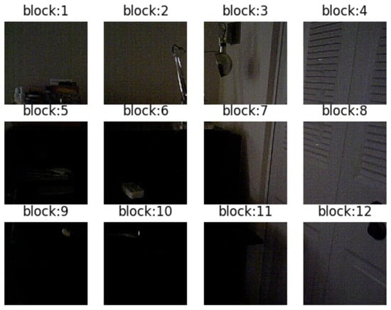 In the experiment, the size of the images we used was 640 × 480. According to Equation (12), m = 640, n = 480, so the GCD = 160, and a = 640/160 = 4, b = 480/160 = 3, the input image is divided into 3 × 4.
