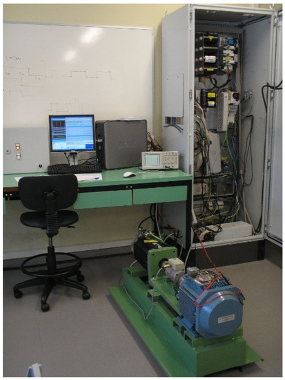 As for the motor platform, it consists of a -kW three-phase induction motor from , on whose shaft is connected to a -kW Unimotor synchronous motor from Emerson, which is used to produce the load torque on the induction motor.