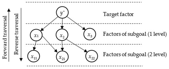 The development of an economic system is defined by the effectiveness of the decisions of management specialists who use a range of tools in their activity. One such tool is a goal tree, which is represented by a hierarchical structure that includes the general goal, placed at the root of the tree, and auxiliary subgoals at the first, second, and subsequent levels [1,2]. Maintenance of a company′s financial security [3], development of a “green” economy in the region [4], optimization of the structure of an organization [5], strengthening of its economic position [6], etc., can be considered in the function of a strategic goal. There are various modifications of the goal tree; in particular, the authors of ref. [7] reviewed goal setting based on a model of the future, wherein the goals and subgoals consist of specific quantitative and qualitative factors connected between themselves by functional dependency. The search direction forms the forward or reverse chain, each of which includes a group of subproblems for solving the global task. Thus, when traversing the factor tree from the bottom upward, the calculation of new characteristics based on existing ones using preset functions (direct problem) takes place. Such a principle of traversing allows for carrying out an evaluation and forecasting the goal-oriented characteristic in the case of known data. In the case of traversing the factor tree from the top downward, the values of characteristics, which form the target value, are determined. At the same time, the necessity of analyzing and processing bulk information emerges, which is difficult to perform without relevant mathematical apparatus and software assets. In connection to this, investigations are dedicated to the development of mathematical and algorithmic tooling for solving inverse problems and increasing the speed of solution generation by way of data processing automatization.