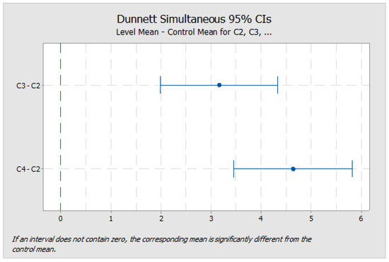 Test results for ANOVA—Dunnett simultaneous statistical test.