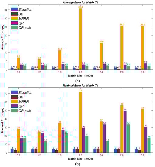 Results of Matrix T1: (a) the Average Errors; (b) the Maximal Errors.