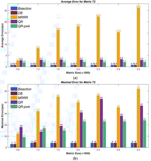 Results of Matrix T2: (a) the Average Errors; (b) the Maximal Errors.