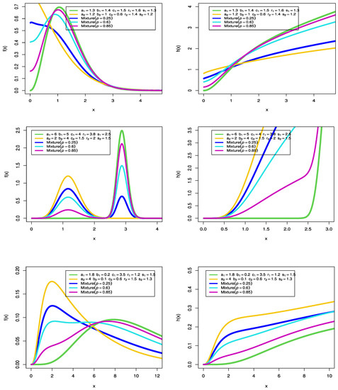 The density in Equation (1) is flexible in the sense that one can obtain different shapes of hazard rate function (hrf) of the mixture model, which is given by