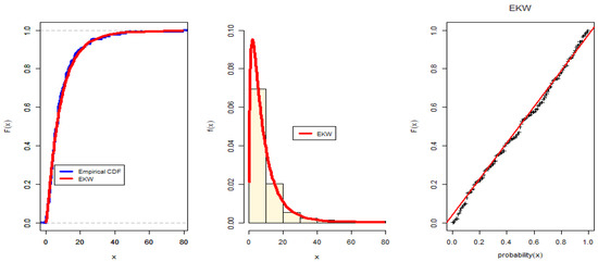 x) of the Weibull distribution in Equation (1). One of the most important advantages of the EKW distribution is its capacity to fit data sets with a variety of shapes, as well as for censored data, compared to the component distributions. One must let