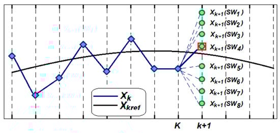 The operating mode that generates the minimal error is selected. The future reference values are unknown; however, according to the linear approximation of Equation (19). it can be assumed that X(k+1)ref ≈ Xkref, taking into account that the sample period T is very close to zero when a system is working with high frequencies.