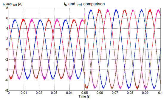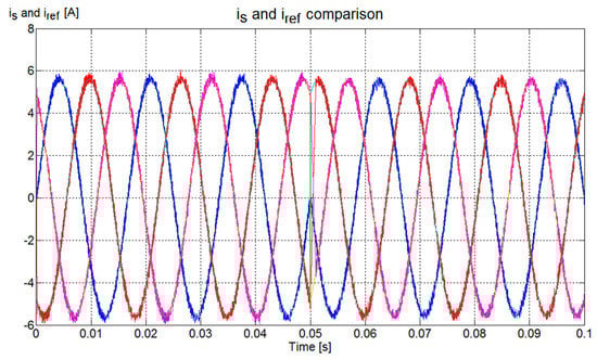 For this example, the results from the forward and backward Euler methods are almost the same since the resistance is very small; therefore, the values obtained by solving Equations (32) and (33) are very close, and the difference in the isa waveforms is imperceptible. When Rs has a greater weight, the Euler backward method tends to produce a closer tracking to the reference.