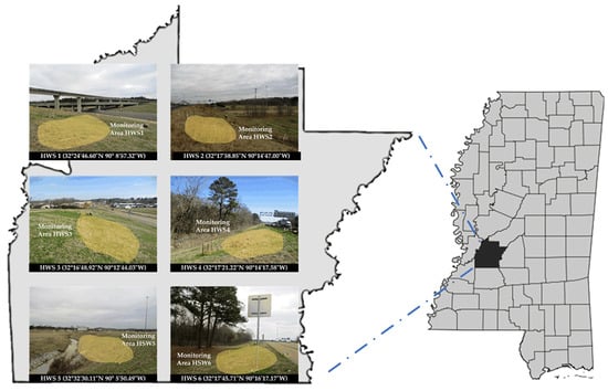 Six HWS were explored in the Jackson metropolitan area, Mississippi, which is constructed on Yazoo clay (Figure 2). The slopes varied from 2 H:1 V to 6 H:1 V, and the surface was covered with naturally growing grass. Extensive field equipment was installed on each of the six slopes to measure SMS, soil temperature, air temperature, and rainfall. The sensors were positioned at the crest, middle, and toe of the six HWS. Moisture and water potential sensors were installed at 1.5 m, 3 m, and 4.5 m depths in each of the six HWS (Figure 2).
