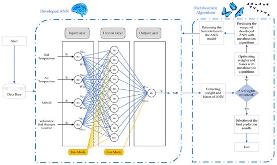 The modeling procedure of the hybrid PSO-ANN and BOA-ANN flowchart.