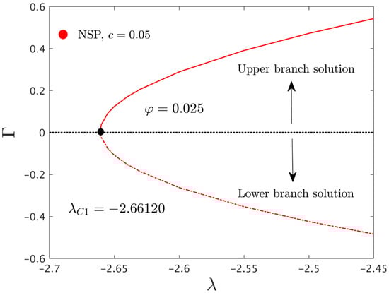 Finally, Figure 10 elucidates the eigenvalues versus λ for the case of the NSP when , , , , and . From the figure, it can be seen that, for the positive outputs of , the exponential decaying function as . Alternatively, for the negative outputs of , the exponential decaying function as . It was discovered from this behavior, and also from the graph, that the UB solution was stable and trustworthy, while the LB solution was not physically reliable and not trustworthy.