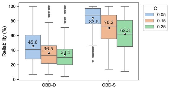 Regarding reliability values, Figure 3 illustrates a comparison between OBS-D and OBS-S. In general, it can be observed that the solutions provided by our simheuristic outperformed the ones generated by the deterministic version in all the stochastic scenarios. This was due to route failures, which occurred during the execution stage and penalized the entire route. Note that, although the level of reliability decreased as the level of variance increased, OBS-S still provided a good level of reliability in scenarios with a high level of variability. On average, OBS-S offered a reliability of %, whereas the one provided by OBS-D was only approximately %. This justifies the processof integrating simulation methods during the searching process when dealing with stochastic optimization problems.