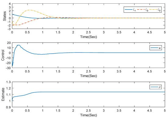 where , , . Clearly, system (48) satisfies Assumption 1.
