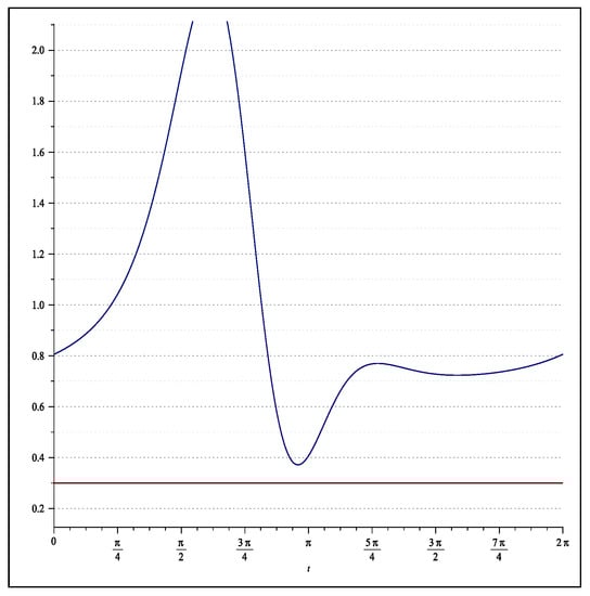 that holds whenever . From the Figure 1b made by MAPLE™ software, since we see that , and combining with , it follows that , thus the subordination is holds.