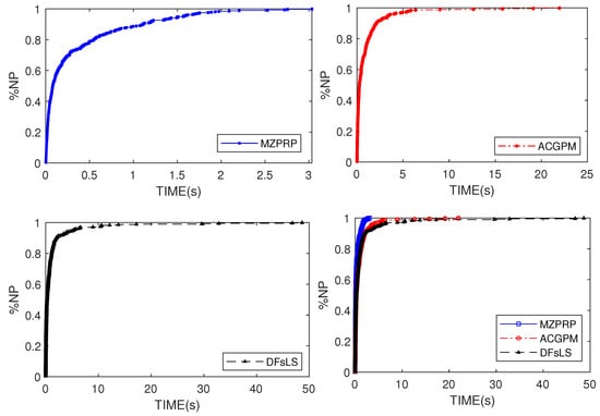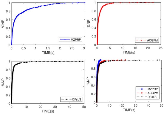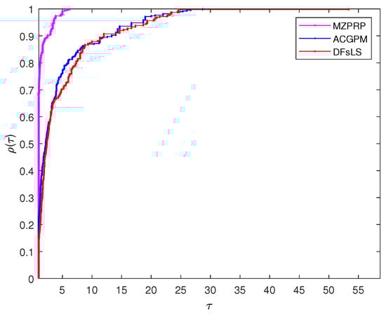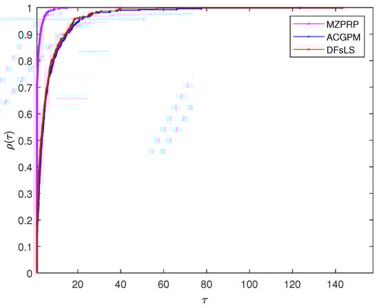 Performance profiles for MZPRP, ACGPM and DFsLS based on TIME.
