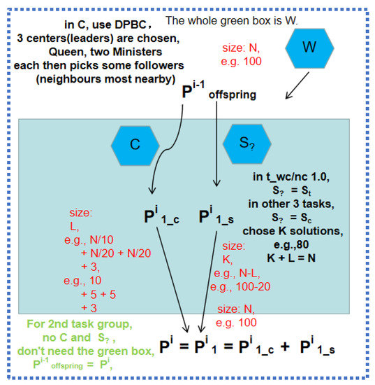 Details of SS in S can be seen in Figure 6. “t1_wc/nc and t2_wc/nc have no Pi0, only t2e_wc/nc needs Pi0 every G generation” [49]. Both t_wc/nc 1.0 and 1.1 establish the selection pressure via settings of single objectives, and t2_wc/nc and t2e_wc/nc use both objectives via NSGA II.