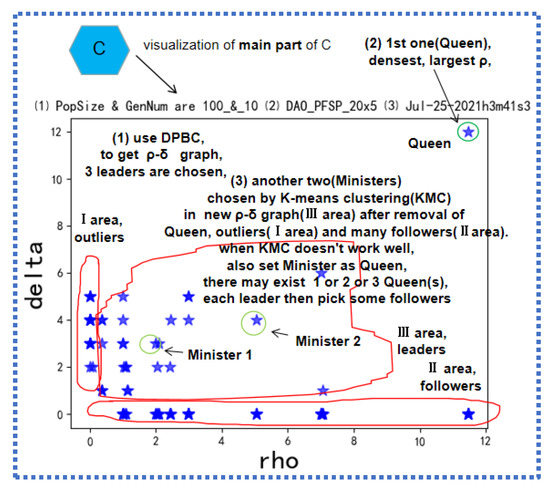 Details of C. You can see a typical ρ-δ (rho-delta) graph in the simulation of PFSP (the same for VRPTW), where ρ denotes local density, and δ denotes “the minimum distance between one sample point and any other one with higher density” [49].