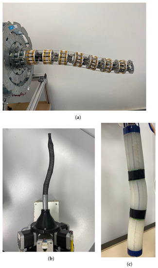 Figure 1. Three examples of CDHR exemplifying each category. (a) MACH-I: a discrete CDHR. (b) Pilory: a constant curvature CDHR. (c) Ruan: a soft CDHR. - (2)