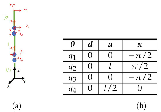 - Denavit, J.; Hartenberg, R. A Kinematic Notation for Lower-Pair Mechanisms Based on Matrices. ASME J. Appl. Mech. 1955, 22, 215–221. [Google Scholar] [CrossRef]