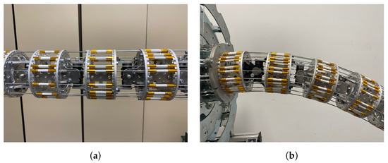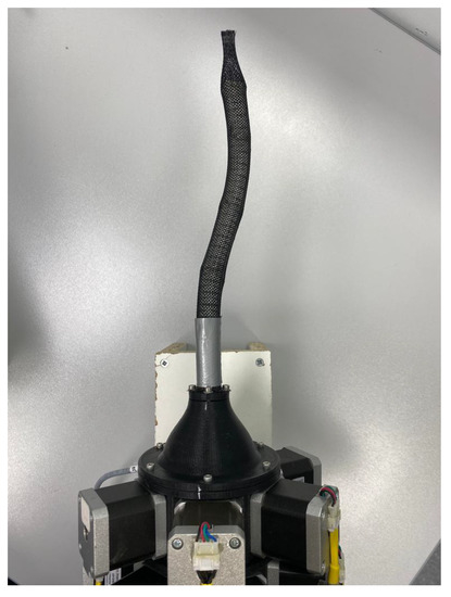 - Muñoz Sánchez, E. Construccion y Control de un Robot Continuo de Cables con Discos Pivotantes. Bachelor’s Thesis, Universidad Politécnica de Madrid, Madrid, Spain, 2022. Available online: https://oa.upm.es/69811/ (accessed on 2 July 2022).