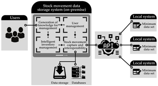 - Stock movement capture and interoperability module: This is responsible for the exchange of data between the proposed and inventory systems. To develop this module, an MSD was stated to carry out interoperability and implementation considering an API. Such an interface employs HTTPS, but the data are represented with JSON. This module is also responsible for backup of the data. The module records each stock movement to obtain predictions that feed the optimization model. This model delivers the final results and serves as an input for the inventory management module.