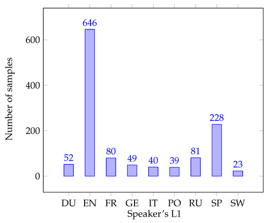 The archive contains meta-information about the demographic and linguistic background of speakers. In total, the archive contains 2982 samples (as of the last known update at https://accent.gmu.edu/ accessed on 1 July 2022) recorded in more than 200 different native languages. The accents were classified based on the native language of the speaker.