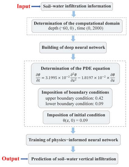 In this section, we introduce the details of the proposed PINN-based method. We first introduce the governing equation and parameters and then describe the method used to solve the one-dimensional soil–water vertical infiltration equation, which uses the PINN to perform a numerical investigation of soil moisture infiltration.