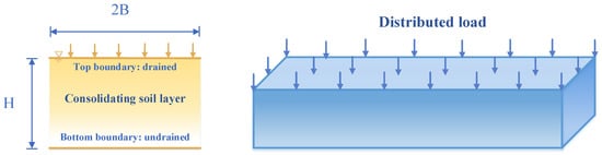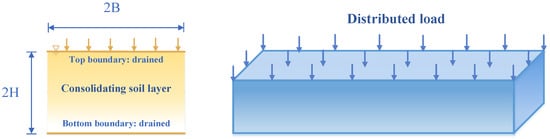 Schematic diagram of two-dimensional soil consolidation for drainage at a top boundary.