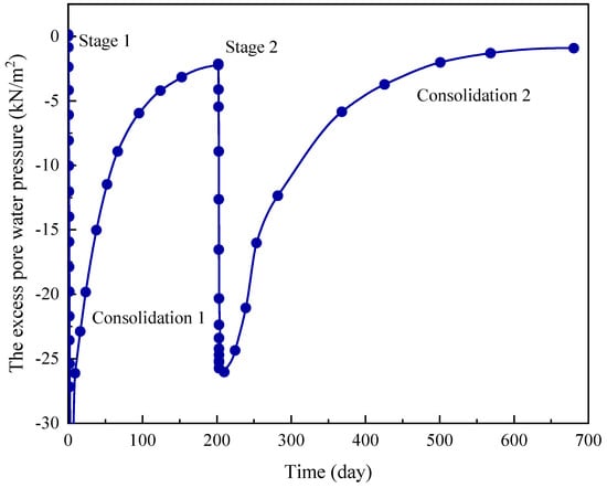 Line chart of excess water pressure change process during consolidation.