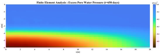 Color map of excess pore water pressure based on the finite element analysis.