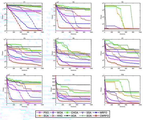 OL can improve the exploration ability of the proposed CMRFO. Then, elite chaotic searching is implemented to heighten the exploitation capacity of this algorithm, in which chaotic mutation is carried out on elite individuals to realize further renewal of elite individuals. The fitness values of the current population are calculated and sorted in ascending order, and then the first n ( n = p · M ) individuals are selected as elite individuals, where p is the selection proportion and belongs to [0, 1]. The elite individuals are recorded as { e z 1 ( x ) ,   e z 2 ( x ) ,   ,   e z m ( x ) }     { z 1 ( x ) ,   z 2 ( x ) ,   ,   z M ( x ) } , where the i-th elite individual is e z i ( x ) = ( e z i 1 ( x ) ,   e z i 2 ( x ) ,   ,   e z i D ( x ) ) and its upper and lower bounds are as follows: