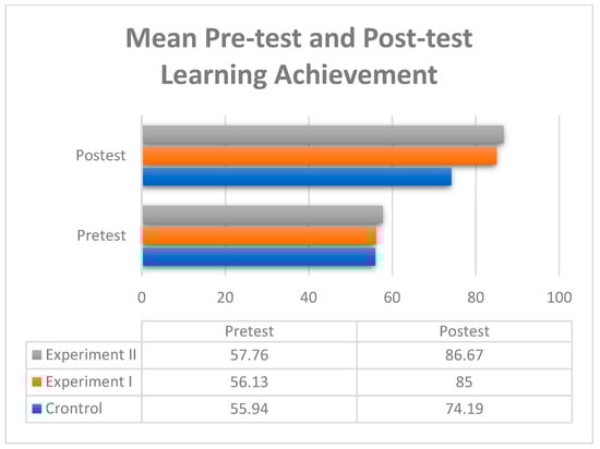 Twenty multiple-choice questions were used to assess students’ achievement before they undertook the activity. Table 1 shows the ANCOVA results from the three-class pre-tests. It is evident that there was an insignificant difference (F score 0.09; p > 0.05), and this indicates that the three classes had similar learning achievements before participating in this experimental research.