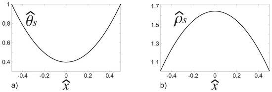 Dimensionless RBCs temperature (a) and dimensionless RBCs density (b) obtained in terms of with .