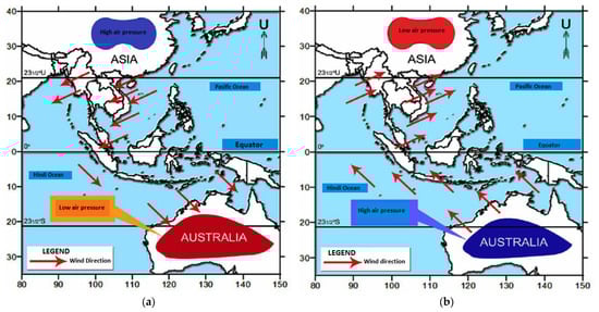Process of the formation of the (a) northeast and (b) southwest monsoon seasons in Malaysia [].