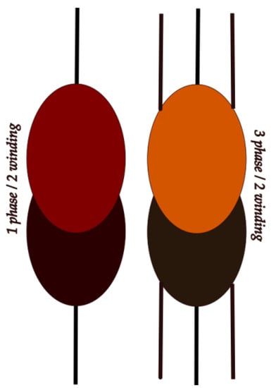 Transformer is a passive component (PC) thattransferselectrical energy from one electrical circuit (EC) to another and is also used to adjust the AC voltage levels; these transformers are classified as step-down or step-up type to decrease or increase the voltage level. The transformer is positioned in the middle to connect the universal bridge to the AC networks at both ends. The converter transformer is by far the most important part. The converter transformer can be used in either the three-phase system or the single-phase layout. However, the one-phase/two winding transformer and three-phase/two winding transformer, as shown in Figure 2, are both acceptable model conformations for the converter banks [25].