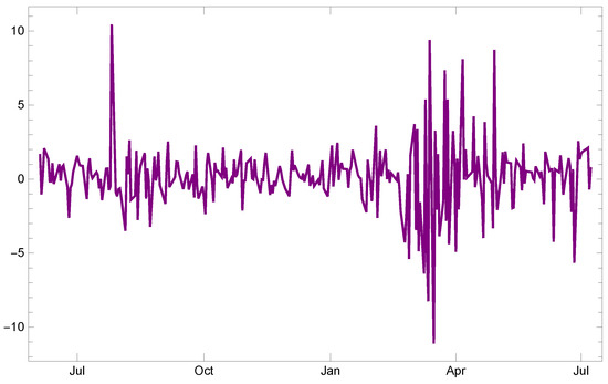 where is a stochastic piece. Herein, is the actual return, is the volatility of the returns on day t (see the discussed models in [24,25] for further understanding about the concept of volatility), and eventually