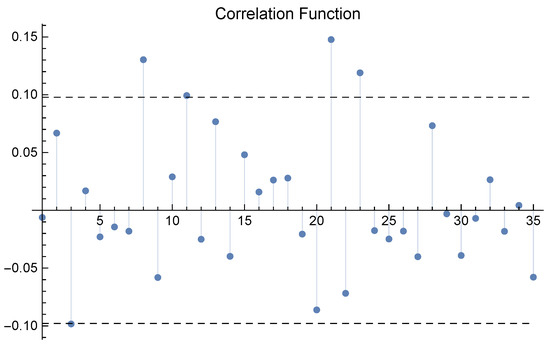The correlation function is also drawn for this test in Figure 4 based on the given above. Here, after some calculations, the normal VaR and Laplace CVaR under the GARCH(1,1) are respectively contributed by