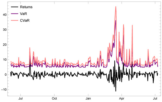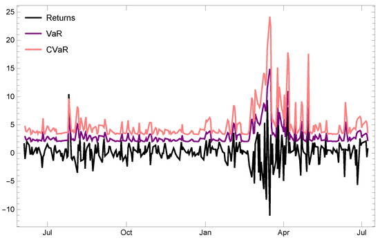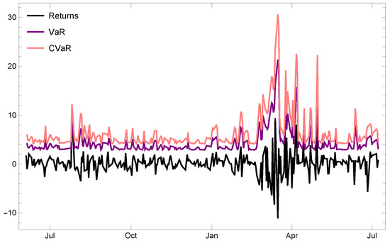 The VaR measure under this generalized distribution has been discussed in terms of applicability and usefulness in the works of [18,19]. Consequently, our work focuses on the CVaR case in the next section, and its application to time series fitting on financial data is our main contribution.