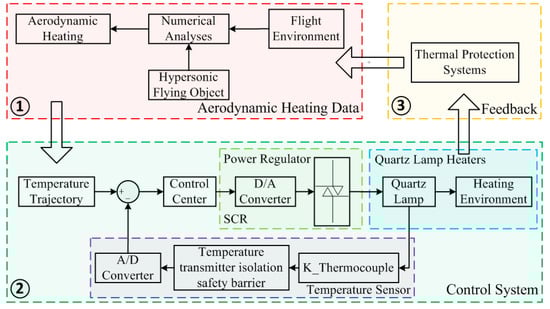 Step 3 (feedback): once the control system can track reference temperature trajectories successfully, the whole circle can be evaluated the TPS of hypersonic vehicles because it can reproduce the real aerodynamic heating environment on the ground.