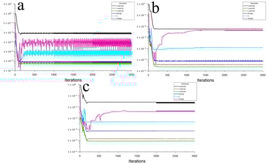 The residuals with different attack angles (a) 0°; (b) 5°; (c) 10°.