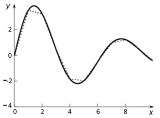 Piecewise linear and generalized functions are widely used in various fields of scientific research. Their traditional fields of application are technical and mathematical disciplines, for example, automatic control theory, electrical engineering, radio engineering, information theory and transmission of signals and images, equations of mathematical physics, oscillation theory, differential equations and many others [18,19,20,21,22,23,24]. Using such functions, for example, they describe the dynamics of mechanical systems with nonlinear elasticities, elastic-dissipative characteristics of vehicle suspensions, systems with loads of the “dry friction” type, impulse transformations during transmission and reception of signals, distributed and concentrated loads, and many other processes.