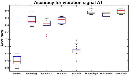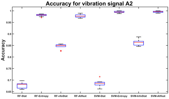 A set of 2550 feature samples was obtained from the RC vibration signal dataset. The procedure was similar to the case of the CP. Each feature sample comprised 12 statistical features extracted from each of the windows considered, and each signal was subdivided into ten fragments.