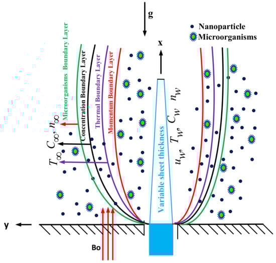 - Wang, F.; Asjad, M.I.; Ur Rehman, S.; Ali, B.; Hussain, S.; Gia, T.N.; Muhammad, T. MHD Williamson Nanofluid Flow over a Slender Elastic Sheet of Irregular Thickness in the Presence of Bioconvection. Nanomaterials 2021, 11, 2297. [Google Scholar] [CrossRef]