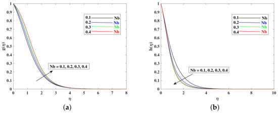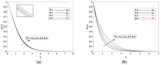 - Nanoparticle concentration increased when Nt is enhanced, and it decreased with the boosted inputs of , , and .