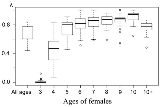 Box plot of pregnant females’ proportion of each age from marine samples.