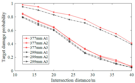 Variation curve of target damage probability at different intersection distances.
