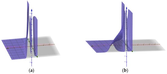 Substituting into expression (16), respectively, then one soliton-like solution (Figure 1), two soliton-like solutions (Figure 2 and Figure 3), and three soliton-like solutions (Figure 4 and Figure 5) can be obtained, respectively, as follows: