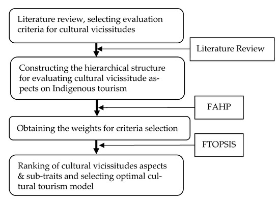 Indigenous unique cultures are viewed as a critical tourism attraction. Developing Indigenous tourism can promote residents’ socio-economic status. Based on the previous literature and expert opinion, this study identifies cultural vicissitude aspects of Indigenous tourism using a mixed MCDM method. The contributions of this study are summarized as follows: