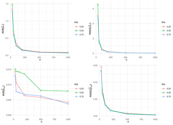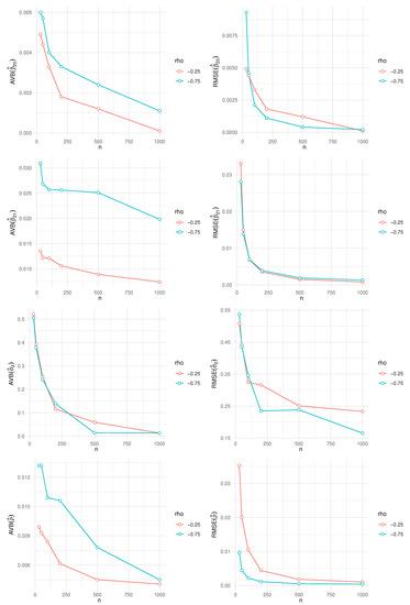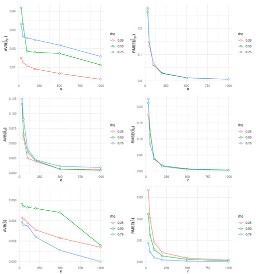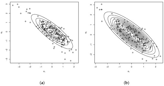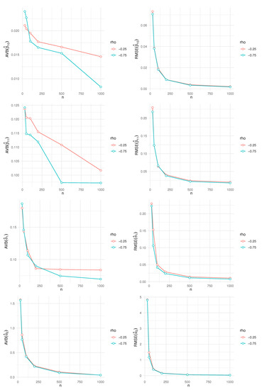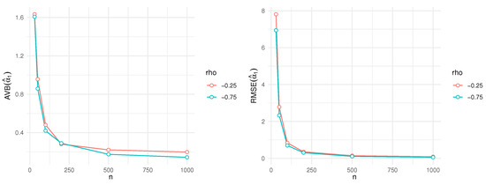 The ML estimates for and need to be obtained through a numerical maximization using optimization algorithms such as, for example, the Newton–Raphson iterative technique. The optimization algorithms require the specification of initial values to be used in the iterative scheme. Our suggestion is to use as initial guesses the estimates obtained from the modified moments of the marginal distributions of for , given that . More details about these values, which are denoted by , and , can be found in Kundu et al. [20].