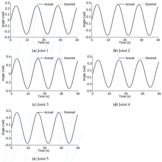 where and represent the actual and desired angular trajectories for each joint, respectively.