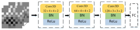 The spatial feature extraction module primarily extracts electrode position features, hence the preprocessed position-reconstructed EEG sequence containing electrode position information serves as its input. Since the data comprises both position and temporal information for the electrodes, the 3D convolution [41] is utilized for feature extraction rather than the conventional 2D convolution. The particular procedure is depicted in Figure 8.